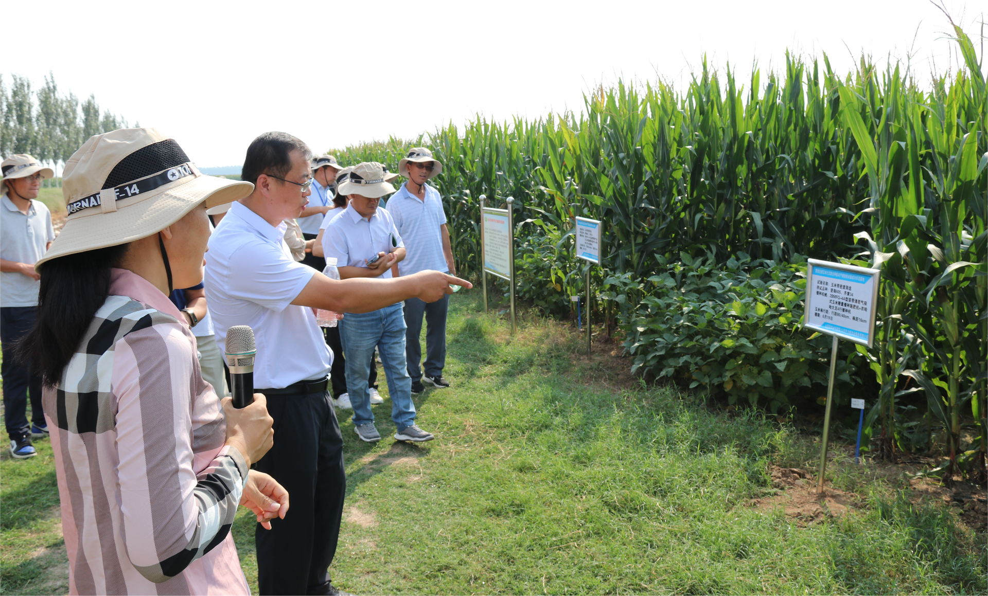 17日上午,与会专家现场观摩了齐河县30万亩粮食绿色高质高效“吨半粮”示范区,并实地考察了小麦玉米周年“吨半粮”科技创新核心基地,以及玉米清茬密植错位播种技术高产攻关田、长期秸秆还田+深翻耕层土壤剖面、玉米新品种筛选展示、玉米大豆带状复合种植等试验示范开展情况。